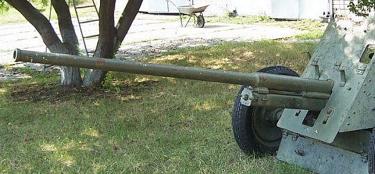for vehicle towing. The ultimate 1942 model of the 45mm gun had a much longer barrel at 68 calibres, about half again as long as the initial guns.