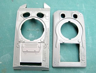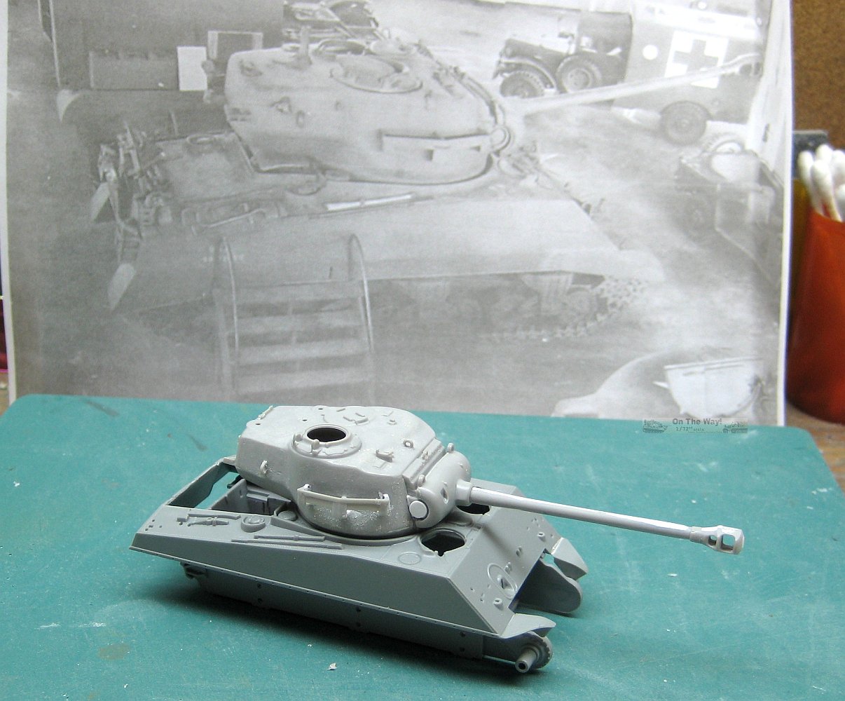 The Pershing turret was used from the kit, "as is". The Sherman upper hull