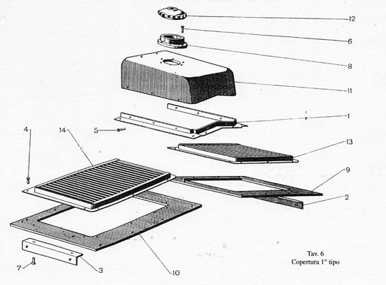 - Early "box shaped" posterior radiator cover, with an anteriorly placed cap. Longitudinal outlet radiator grills.