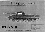 Kit Reviews Kit Reviews As mentioned above, there are three kits available of the PT-76: ACE, ARMO and PST. The first kit to be made available to modelers was the resin ARMO kit in the late 1990's. ARMO got its start in the business by producing kits of modern Soviet and Warsaw Pact vehicles, which until recently were long overlooked in small scale. ACE and PST both released plastic kits of the PT-76 in 2003. The recent surge in production of plastic kits of Soviet vehicles may spell the end of the useful life of the ARMO kits, but perhaps their simplicity and the nice detail of the resin casting method may keep their appeal alive. The following abridged reviews are presented alphabetically, and not necessarily in order of preference. ACE