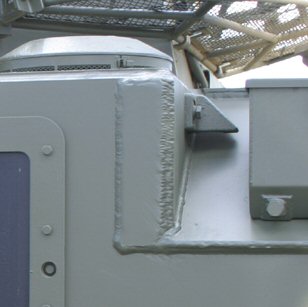 This also has been up armoured like the MRV. Mechanized Artillery Observation Vehicle FV514 Or Man portable Surveillance and Target Acquisition Radar, this being the radar system and not the vehicle. Sometimes referred to as an OPV . To all intents an purposes this looks like the normal Warrior with the exception of the rear bins either side of the door. The actual differences are more comprehensive than that and some require quite a bit of work. The MAOV and the BCP are not converted infantry Warriors, both are built as specialist vehicles and so have a few changes to the basic infantry vehicle, going from front to rear the changes are: Exhausts and deflectors need to be scratch built for the APU on the right hand front of the vehicle. This is quite a complex affair as you need to shave of the existing louvers on the forward triangular section. You also need to remove the moulded on plates for the front lifting eye. On the side of the hull what look like metal strips have been added along the edge of the triangular plate.