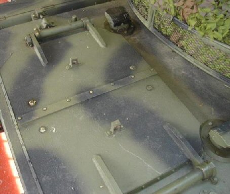The turret can be modified as with the troop variant, unless you are actually going to build the optics. Some vehicles have been seen with a square cut out in the left hand cover. The other changes include the addition of 2 extra antennae mounts and 2 metal bins attached to the turret sides. I used the kit gun for this turret, as it is only a wooden decoy on the real vehicle and usually has covers fitted over most of the length hiding any detail. The periscope between the two hatches also needs to be removed, but here only. The circular mounting needs rebuilding after.