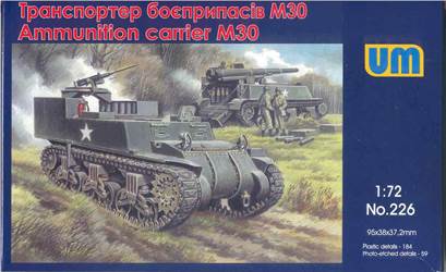 Part 3: The UM M30 Cargo Carrier (Kit 226) This review covers a construction review for the 1/72-scale US Army M30 ammunition carrier model kit for the M12 Gun Motor carriers (GMC) kits in small scale, from the old venerable ESCI company, and a new release from UM. Along with the UM M12 kit, UM has this new kit of the M30 ammunition carrier that accompanied and supported the M12. So