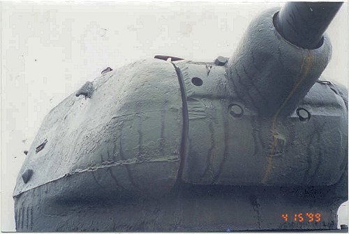 3. A good view of the Zis-S-53 gun mantlet belonging to the same T-34-85 as in Photo II above. Interesting is what appears too be a screw head near the crest of the mantlet's barrel sleeve. Barely visible at the top right is the loader's Mk 4 periscope.