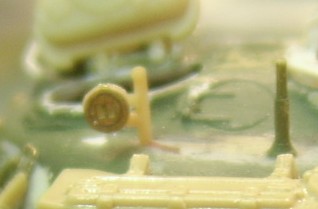 | Other changes that need to be made concerning the turret, centre around the fixtures and fittings. Firstly the commanders cupola, as can be seen in the photo below, there is some bolt detail around the rim that is missing from both the ACE and Revell kits.
