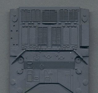 Highlights Highlighting a model involves two steps: the highlight coat of paint, and drybrushing. The highlight paint serves two purposes: it gets rid of unwanted wash stains, and it also weathers the vehicle. Use the same paint that you used for the base coat, but add some white to it. With the fine nozzle on the airbrush, carefully spray this lightened color onto all the open areas of the tank, like the glacis plate, turret roof, hatches, anywhere away from the nooks and crannies that have accumulated the wash. Pull the brush further away from the kit, and ever so lightly spray the lightened paint over the whole thing. This is difficult to explain, but it will make sense when you try it. The person who taught me this technique would buy two jars of the same color paint, and add a few drops of white to one of the jars, and use that jar for the highlights. I don't do this for two reasons. 1) I don't use enough paint to warrant two jars of each color. They'd go bad before I got around to using it all. 2) No matter how close the colors may look, it is possible to get colors that are ever so slightly different. Unless the jars came from the same batch of paint in the factory, this is always a risk. What I do is lighten the paint right in the airbrush cup. I add one or two drops of white and mix well. Don't add too much, or the colors won't match anymore, and don't add too little, or you won't be able to tell a difference from the base coat. Sometimes, you may want to repeat this process a couple of times, each time, lightening the paint a little more. The next step is the drybrush. The concept is to use some very light paint, either white, or a very lightened version of whatever the base color is on the tank. Get some on your brush, and then rub it off onto a rag or piece of paper, so that very little paint remains on the bristles of the brush and it is almost dry (hence the name "drybrushing"). Then lightly rub the brush bristles over all the bumps, edges, and high points on the kit, basically anything that would catch sunlight. The small amount of paint residue on the brush will highlight all the edges, making the model look more in scale. Again, I've been looking for the best method of doing this. Sometimes using acrylic paint works well, but other times, it seems that I get the best results by using an oil paint. Perhaps climate plays a part in this, and acrylics work best on very humid days. I'm not sure. Many armor builders I've met use pure white for drybrushing, but I think that tends to be too light. I instead use a very light gray. This is only for sharp edges, like along joints on the turret and hull edges, or any sharp, pointy protuberances. For rounded, softer, raised areas, like the mound-shape ventilator covers on Russian tanks, I use a very lightened shade of the camouflage color instead. You may want to repeat this step several times, using lighter shades each time.