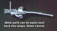 people think. First of all, it is important to note that polyurethane resin provides certain health considerations when working with it. Specifically, the substance is toxic and a possible carcinogen. In its solid form, resin is safe to handle. I know of no studies indicating any sort of absorption through the skin from handling solid resin. However, when in a liquid state (if you are casting your own resin parts) care must be taken to not get the resin on your skin. As model builders, we need to use caution with solid resin when we sand and grind it. Resin dust is hazardous when breathed or otherwise ingested. So whenever producing resin dust, always wear a face mask (cotton breath masks are available at most good hobby shops), and glasses or goggles. You don't want to get any of the dust in your eyes either. If you can do all of your sanding outdoors, that's even better, or do it over a basin of water, which collects the dust. Wash your hands after getting covered with dust. Do not eat, drink or smoke until your hands are thoroughly cleansed. A Tip From John Elwen: "One way to cut down the dust is to either use a wet file, or file the parts whilst holding them underwater in a washing up bowl. Using the bowl helps prevent loss of the part, and the water prevents your file from clogging as it doesn't get filled with hot resin." Now onto some construction tips: