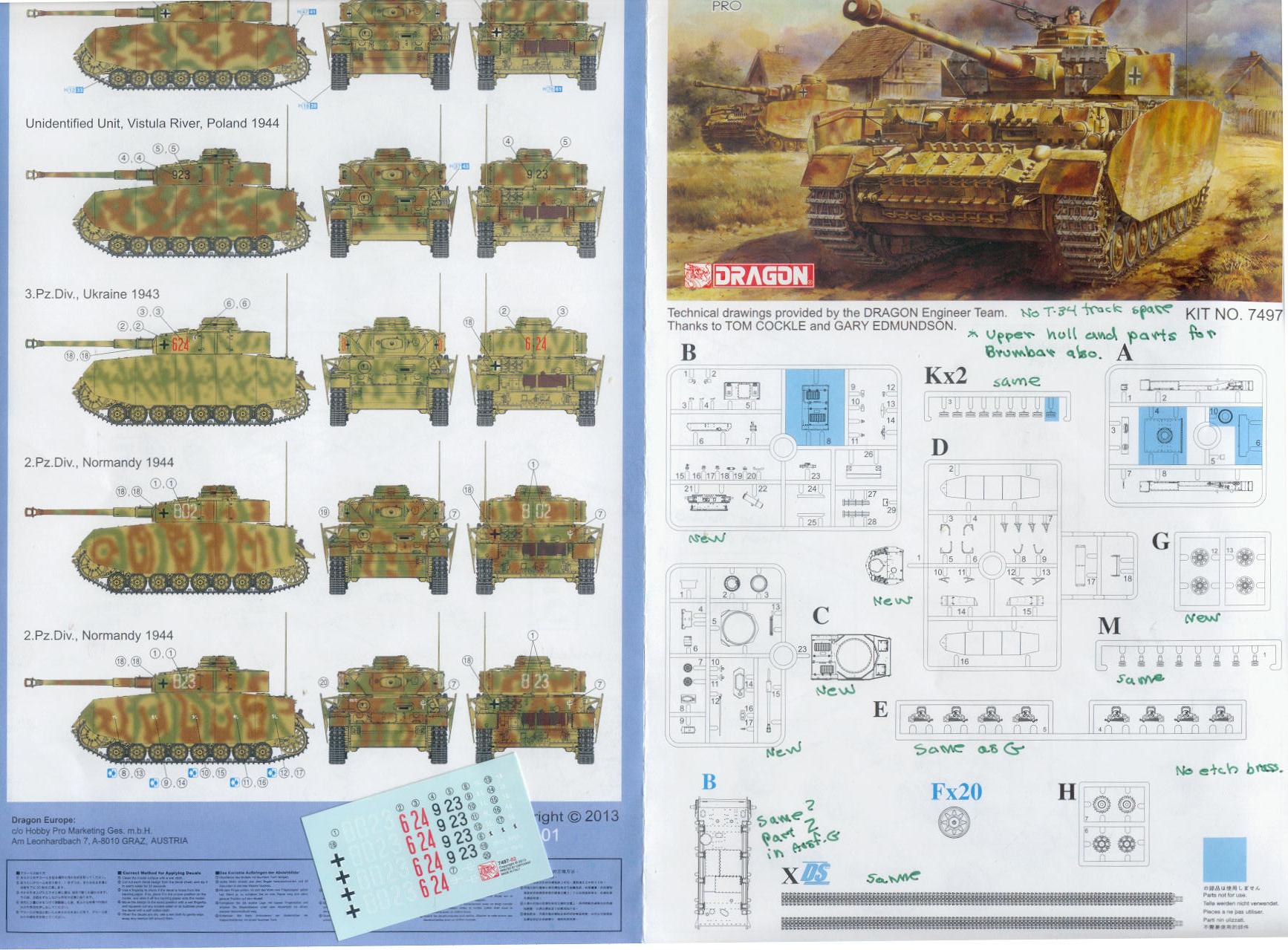 Dragon Panzer IV Ausf. H kit 7497: I have read that the Pz IV Ausf. J tank was a retrograde simplification of the earlier Panzer IV tanks to save money and speed production; ironically Dragon's Pz IV Ausf. H model appears to be a retrograde simplification from the excellent DML Pz IV Ausf. F and Ausf. G model kits released several years ago. I would not be so harsh if Dragon did not continue to use phrases like "with astonishing detail" on their box description.