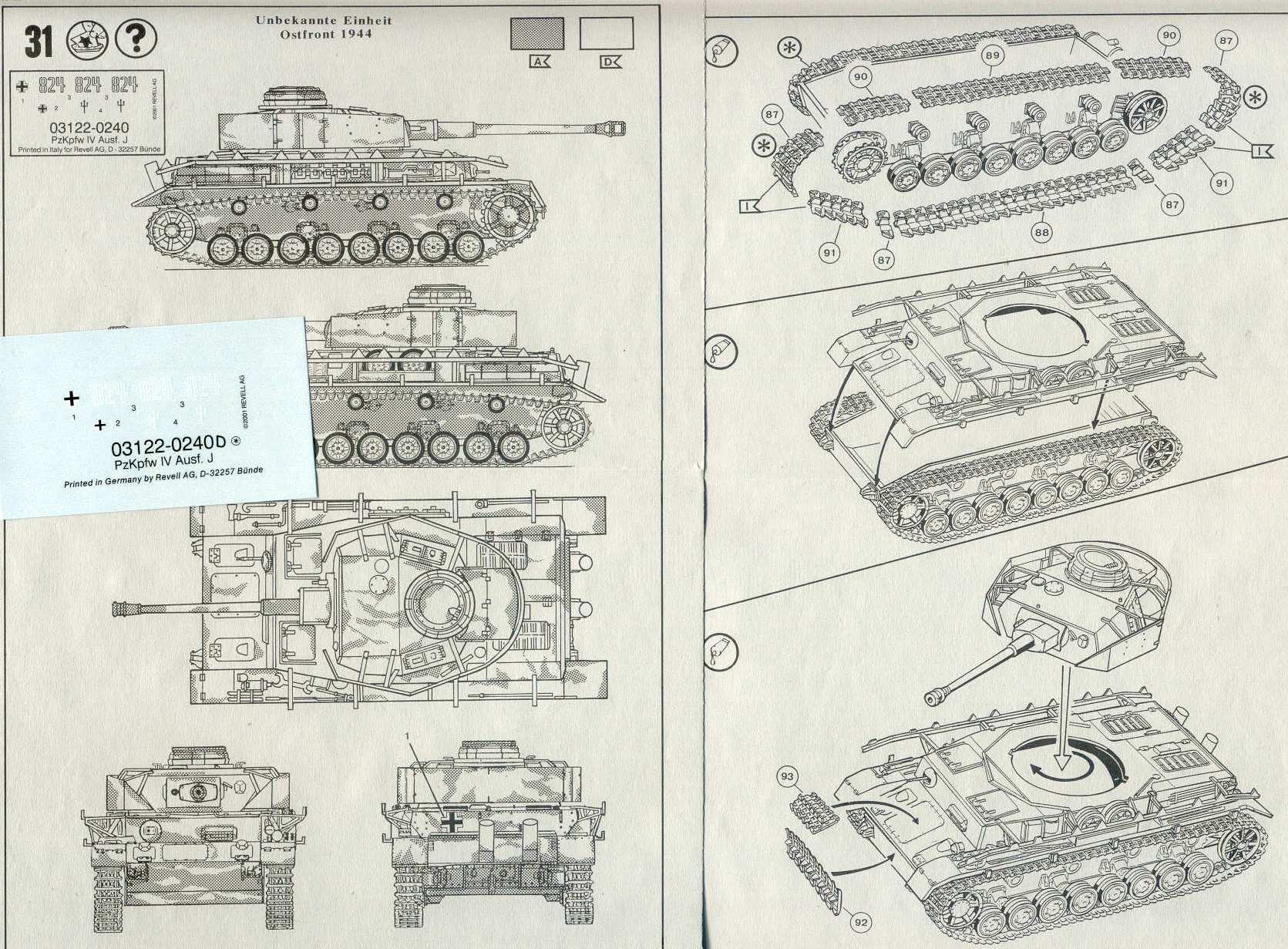 Revell's Panzer IV Ausf. J kit #3122; As Revell's Ausf. J shares most of its parts with Revell's Ausf. H, most of the comments for kit 3119 will count for kit 3122 as well. Certain features like the exhaust pipes and gun muzzle will need to be drilled out, where DML's slide molding makes this drilling work unnecessary. With some new scratchbuilt side rails and fine wire mesh from model railroad supplies, Thoma skirts will make a nice variation.
