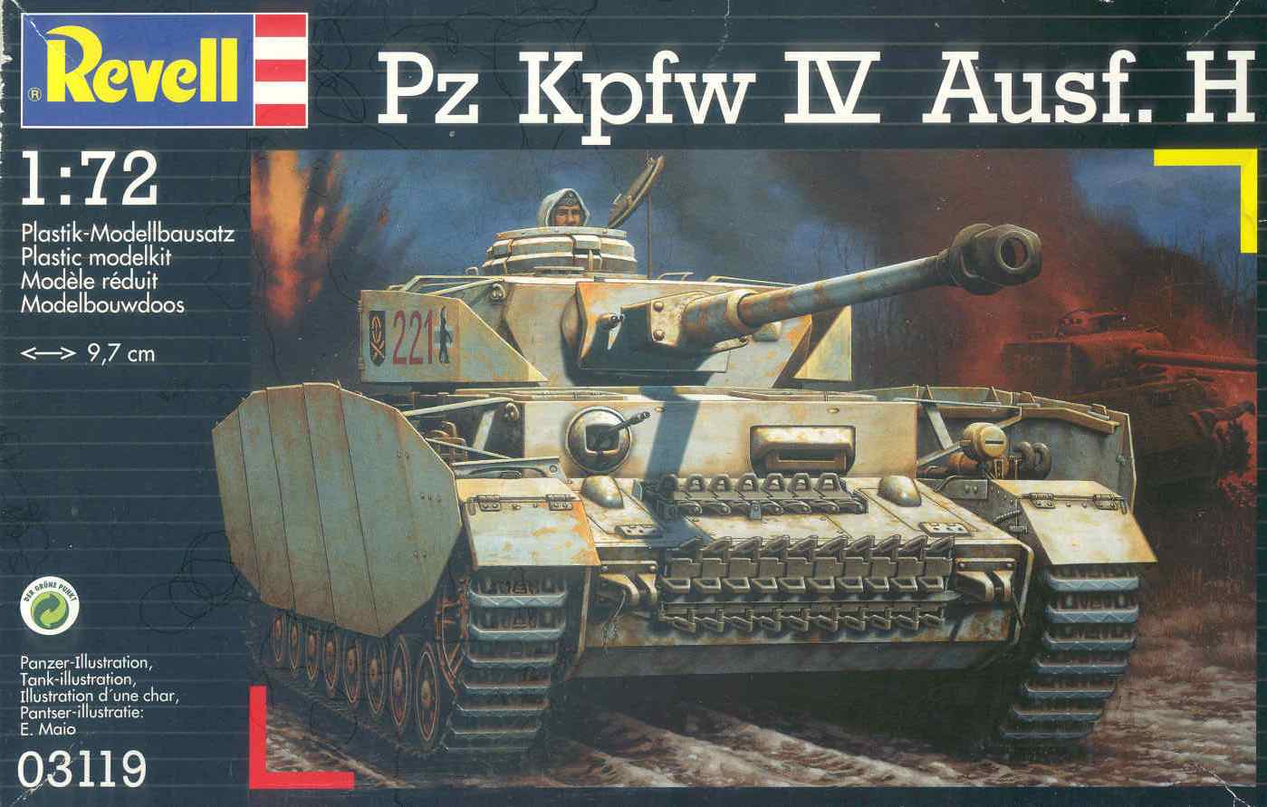 Revell's Panzer IV Ausf. H kit #3119: This kit appears to represent a standard, factory production Ausf. H Panzer IV with all the appropriate parts included. A significant feature missing are the rubber tired roadwheels particular to many Ausf. H. If the side skirts are mounted than the return rollers will not be visible. Molding and detail quality are very good.