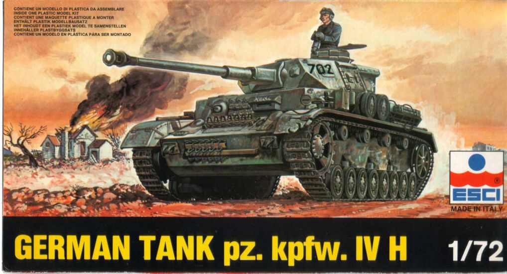 I love the box art, but the ESCI Pz IV kits do not match the quality of that offered by Revell, Dragon, or even Hasegawa. In these photos note that the Pz IV G has side skirts but the Pz IV H does not.