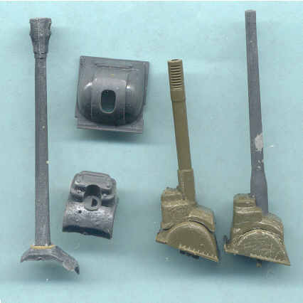 Italeri mantlets. At far left is PST’s 122-mm D-5S barrel with