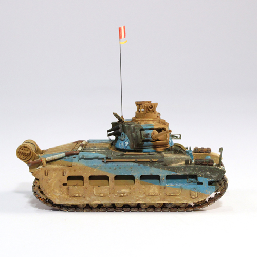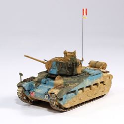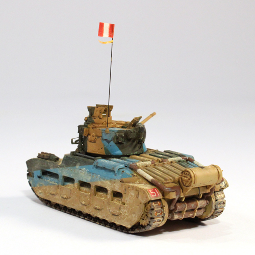 Italeri Matilda Mk.II in the WDF Caunter scheme (I know the whole debate about the blue, but I don’t care). I added a few things and painted with acrylics, weathered with oils and pigments. |