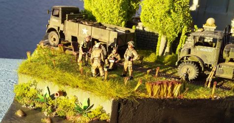 down it. I made the lathe from scrap plastic and balsa. In the middle of it is a spare wheel holder from an IBG CMP truck. The passenger in the jeep has a balsa wood leg splint with masking tape bandages. He was meant to be a tank rider but he mostly fitted in the jeep.