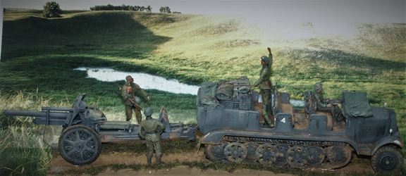 to 1/72 scale Sd.Kfz. 6 halftrack with First To Fight leFH 18 gun.