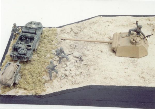 The vehicles are: Ford GPA by Czech Models, cargo trailer by Hasegawa and a Panther turret by ESCI.