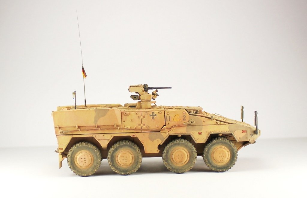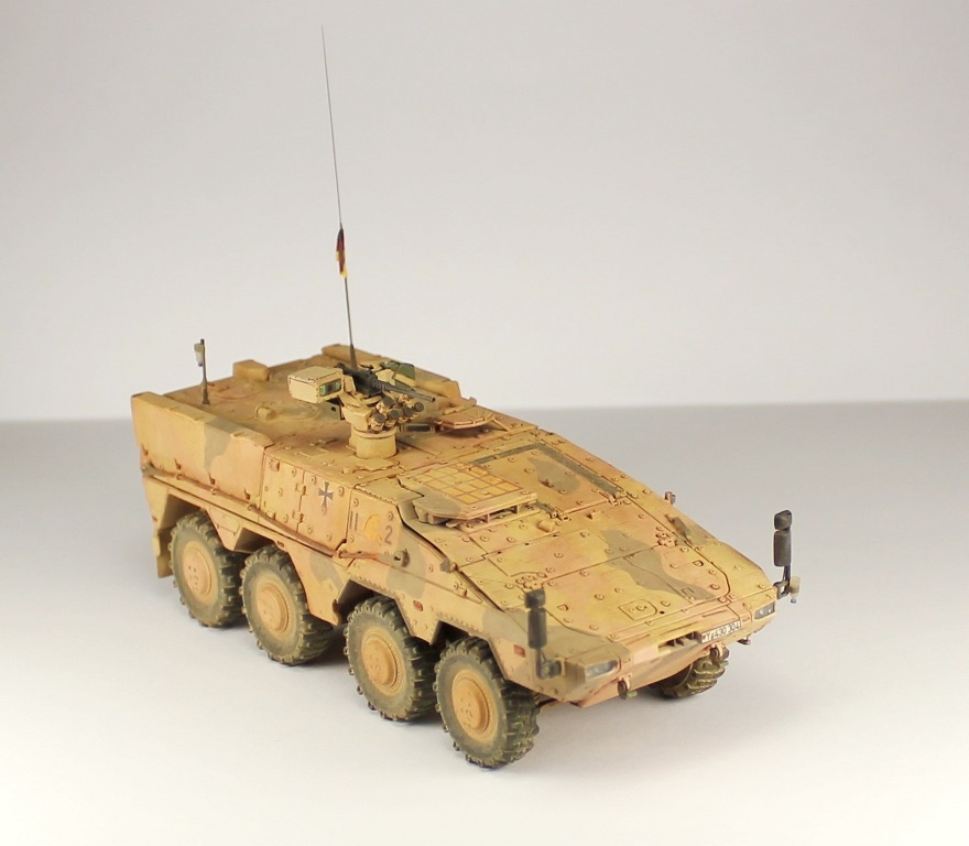 | This is the Revell Boxer GTK GTFZ A1 and is marked as an armored vehicle of the ISAF German contingent OP North in 2013. Wheels were the main problem area at the time of assembly, otherwise just a few small corrections were made. |