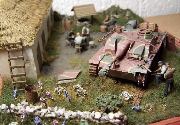 Revell Sturmgeschutz III Ausf. G (03132). Crates from Preiser. Figures from Preiser (72507 and 72505).
