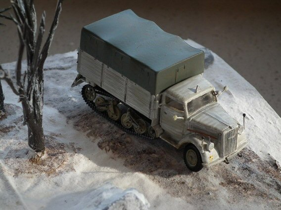 Roden Sd.Kfz.3 Opel Maultier finished in a winter scheme, built OOB and finished with Tamiya paints.