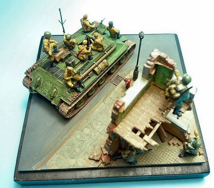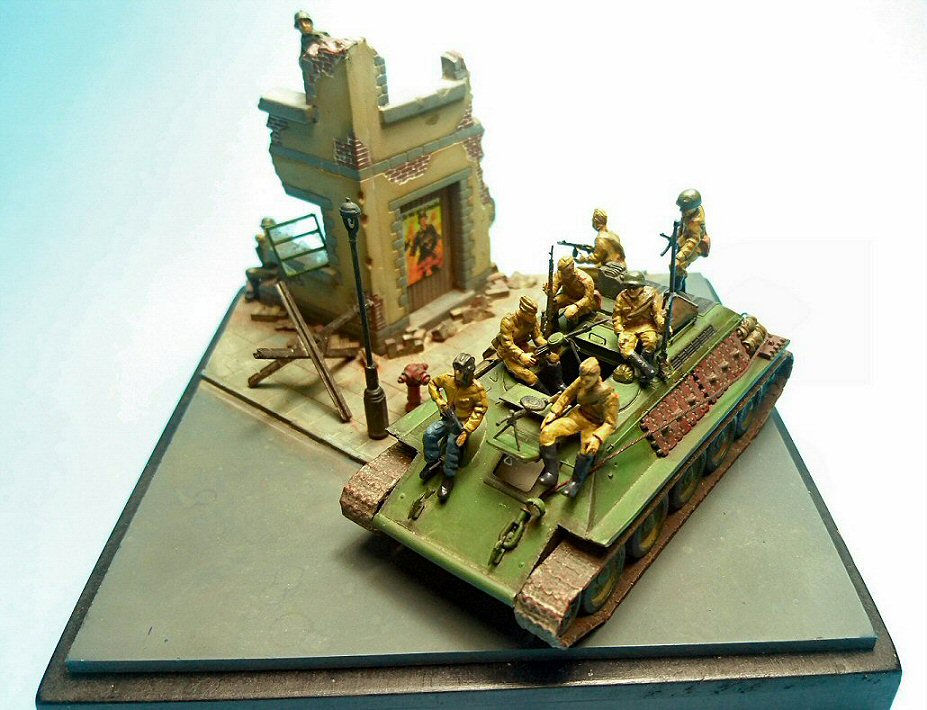 The Russians are converted from MMS's Russian Tank Riders 1943 and Esci's T-34/76 tank riders.
