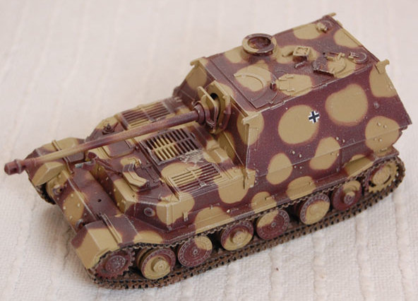 The hard edge camo I did with putty. First the base color (dark yellow). Next I put putty on the model on the places I wanted to stay yellow, then sprayed with Hull red.