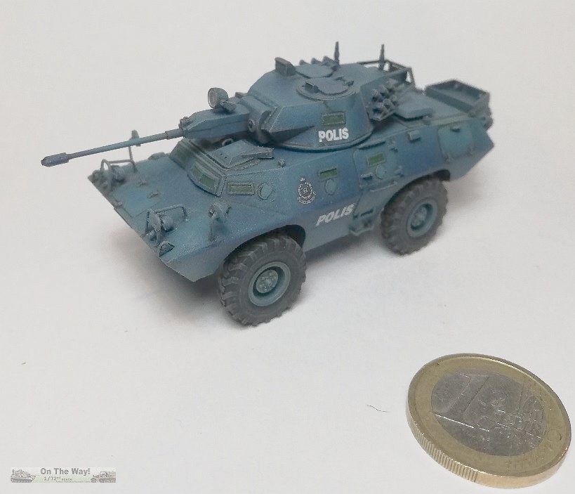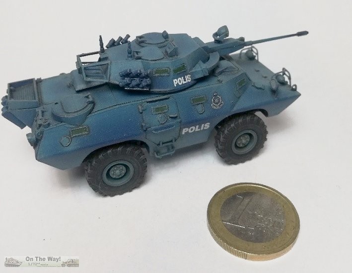 | This is the cool ACE LAV-150 APC with 20mm gun from the Royal Malaysian Police. Built out of the box with adding the light brush guards from copper wire. |