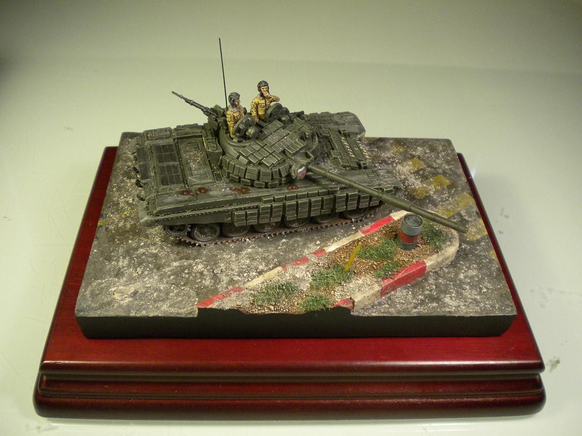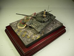 | This is a model of a Russian T-72S in Grozny during the first Chechen War in 1995. The model a mix between the Revell and ACE T-72 kits. The figures come from MiG Productions. |