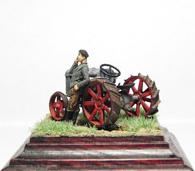 | This is a resin Fordson-Putilovets Soviet farm tractor from Model Stroy The model represents one of the first Soviet tractors which were issued in large quantities (from 1924-1932). The real tractor was a Ford licensed copy made at the Leningrad plant "Red Putilovets". The tractor driver figure is from an Alex Miniatures set. |