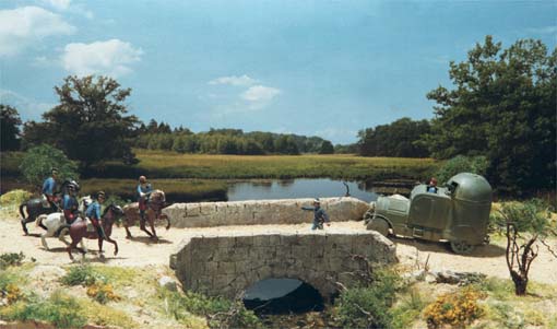 "Austrian Dragoons meeting the prototype of the first armoured car, the Austro-Daimler during a manoever around 1904."