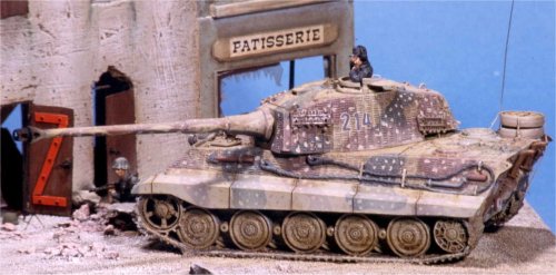The King Tiger is by ESCI, the figures are SHQ, and the building is scratchbuilt. Visit Paolo's website.