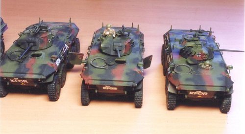 Modification: * Hatches of the driver, gunner and the commander are scrutchbuilt to be flexible with the copper wire act as hinge shaft. * The side door is flexible with copper wire hinge. * The larcels on the rear deck can be removable: stick a 0.4mm copper wire on the center of the larcels center. Drill a 0.4mm hole on the deck surface. Assemble them together. * The cable on the deck front can also be removble using the same mothod.