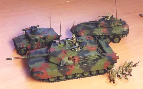 Modification: *The hatches are flexible as hinges are added with some copper wires (please see the first photo). *Crew is added. (Lower part of the crew is cut away and fitted with a 1mm wire. A plastic plate is fixed inside the turret with 1mm holes drilled on it. Then the crew can be fixed into the turret without wobbling.) *The NATO camouflage is air-brushed very well. The edge of the camouflage would not be too blur.
