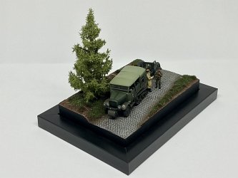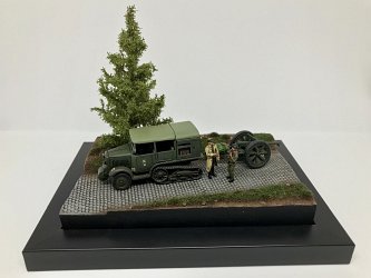 This is Olivier's dioroama depicting a scene from the German invasion of France. The UNIC P-107 is from Ace and the 75mm Mod.1897 is from First To Fight with wheels from AL.BY Miniatures. The figures come from Retrokit. |
