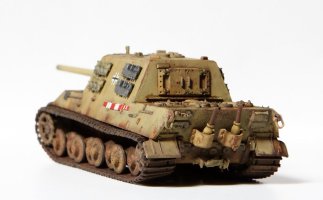 This is a simple, fun kit to build until it comes to fitting the tracks. They are waaaay too short! The first fitting caused the axle on one of the idler wheels to snap so these and the drive wheel axles were replaced with brass rod. After getting them to stay together by melting the ends together, the tracks are putting too much stress on the wheels causing a couple to twist. Thoughts of inducing some sag had long gone by this time. Normally I wouldn't send something like this as I don't think it's turned out well enough but there's no pictures of this Trumpeter model currently in the gallery and none that I could find on the web. It may serve as guidance/deterrent for anyone contemplating this model? Painting was: