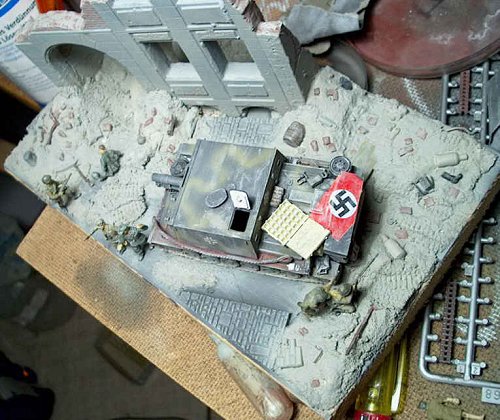 The Stug 33 is basically made of the ESCI Stug III gear and the ALBY resin top. Please excuse the big swastika!