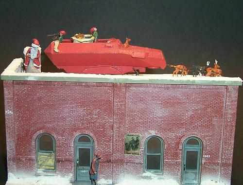 Like for the peoples of Asia, Europe and Africa, the war has been hard on Santa Claus. His original sleigh has been fragment-riddled over London and Burma by AA fire in 1940 and 1941, then finally to be abandoned as unrepairable. Santa has replaced his original wood sleigh with an armored Sd.Kfz 251 salvaged in the Ukraine and later modified and personalized by the elves. A 30-cal Browning manned by an elf has been added to help discourage night fighters and sentries, while another elf keeps a watchful eye.
