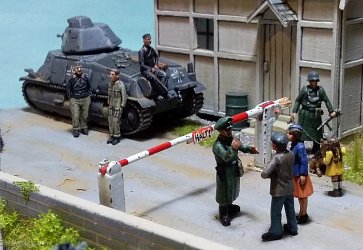 I used the Solfig checkpoint set which has two German MP's, a dog, three French civilians and a barrier arm with support posts.