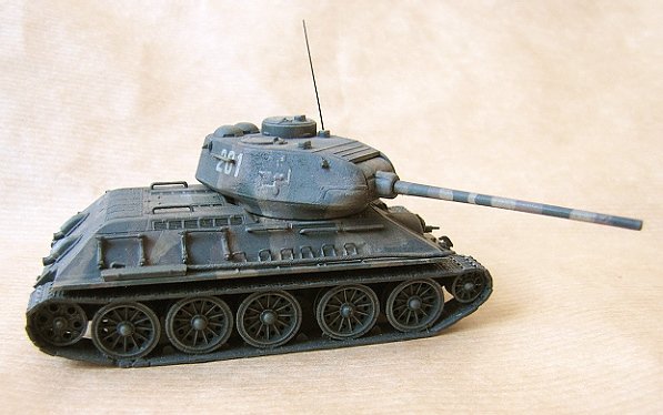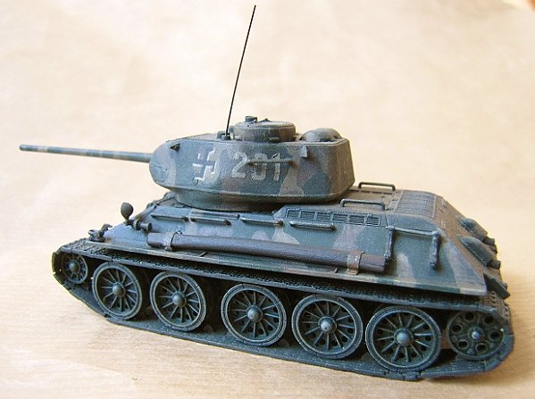 I enclose a picture of an actual T-34-85 in Finnish Tank Museum in Parola for reference. This is not the same vehicle depicted by my model, and differs from it for the part of its fenders and some after war assemblies. The painting of the museum vehicle is not original, but replicated in recent years. A close resemblance of the wartime Finnish camo scheme can be obtained by using Tamiya XF-52, XF-57 and XF-58 colors, but in the small scale they should be toned a bit lighter.
