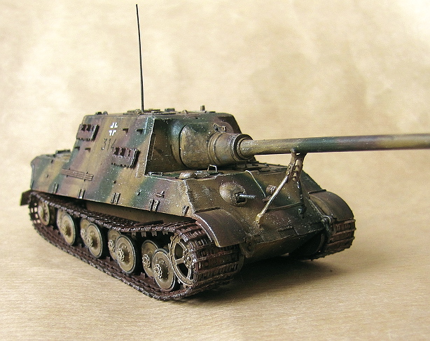 | Built almost straight out of the box as an approximation of one of the few Porsche versions without zimmerit coating. The rubber tracks required guiding pins to settle. |
