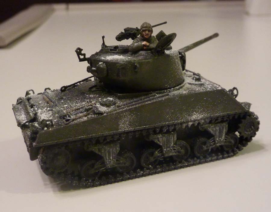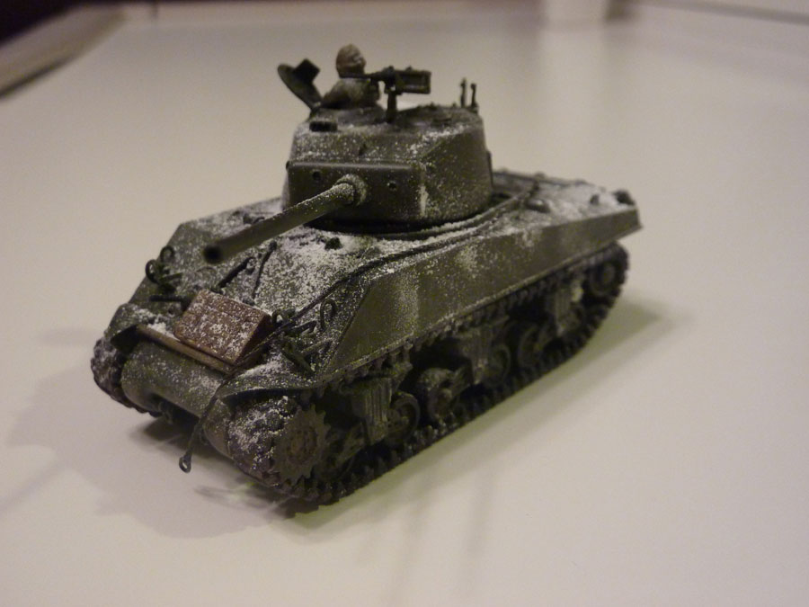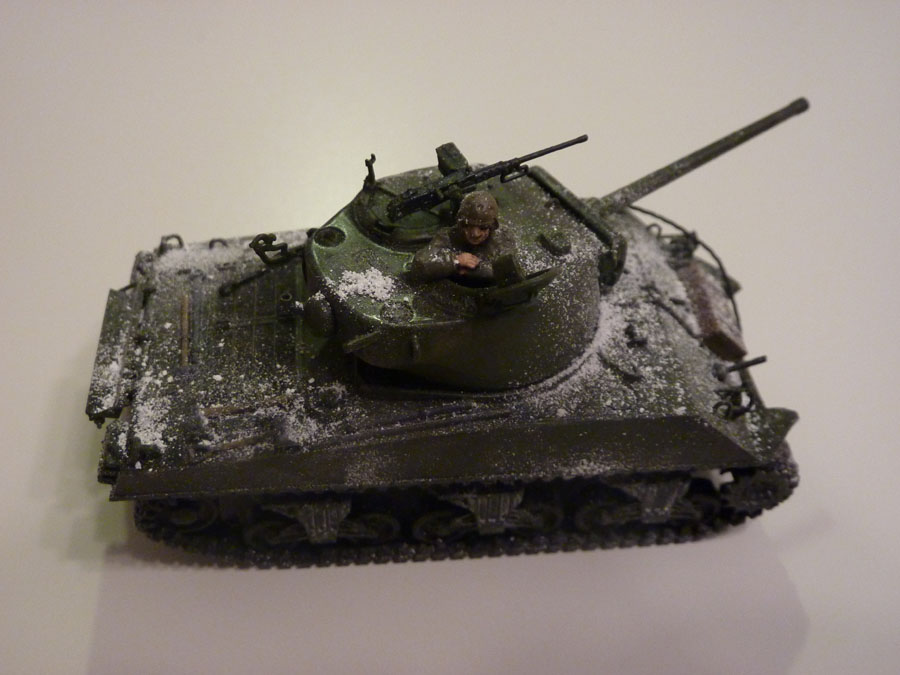 Dragon US M4A3 76 MM Sherman in the Ardennes. Snow was fashioned from Tamiya's pastel set.