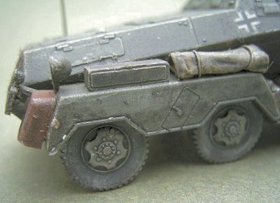 This new "8-rad" by Roden is built almost straight out-of-the-box. Some equipment have been added, (such as width indicating gauges, towing hooks, tarpaulin rolls and an antenna). The edges of the side fenders have been thinned down to approach scale thickness and the frame antenna installation holes (which are a Sd.kfz 232 feature) on the body and turret have been filled up. The markings are of the 2. Panzer Division while positioned in Balkan and Greece in 1941.