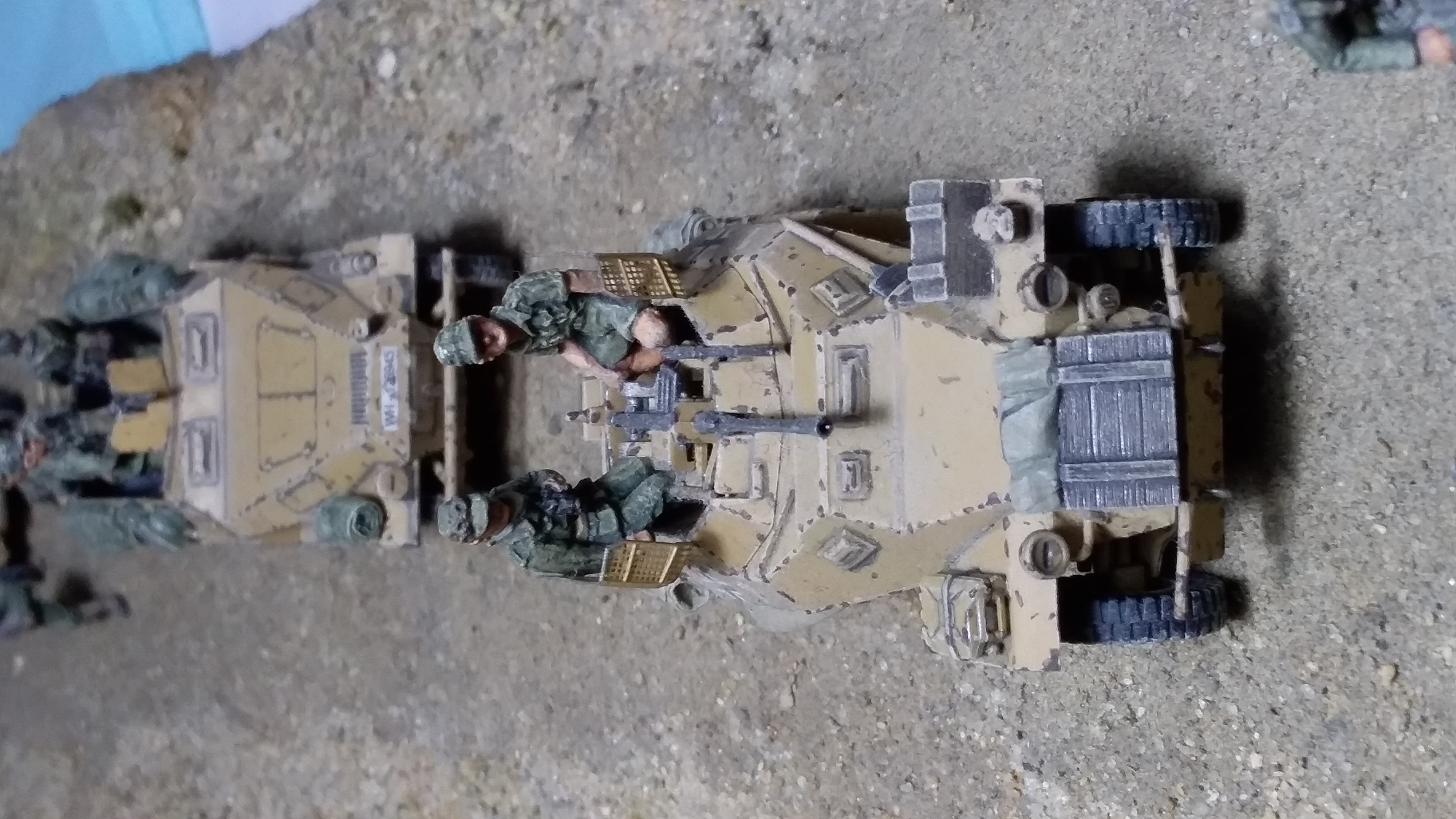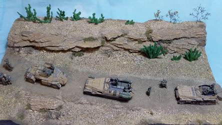 The vehicles are: SdKfz 222 by Dragon I converted the FTF 251 from Ausf A to B by adding a spare Revell MG shield and carving off the tools and vision port visors and hiding the scars under stowage. I used Woodland Scenics rock molds to make the rocky