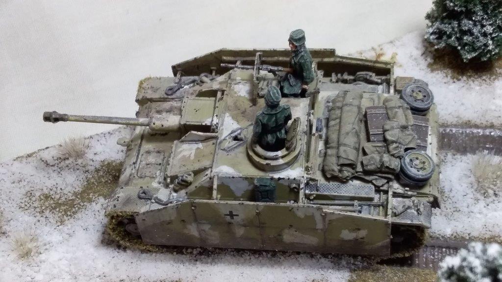 are some pics of my Dragon Sturmgeschütz III early version. It has an AB Miniatures crew and Italeri accompanying infantry. All scenic material is by Woodland Scenics. |