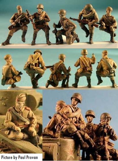 FIG052 Soviet Tank Riders A nice little set of figures for sitting on 1/72 and 1/76 scale Russian Tanks. I used a lot of different shades of khaki and browns to make the uniforms stand out from each other. (I know you can't really tell from the picture.) - Paul Provan.