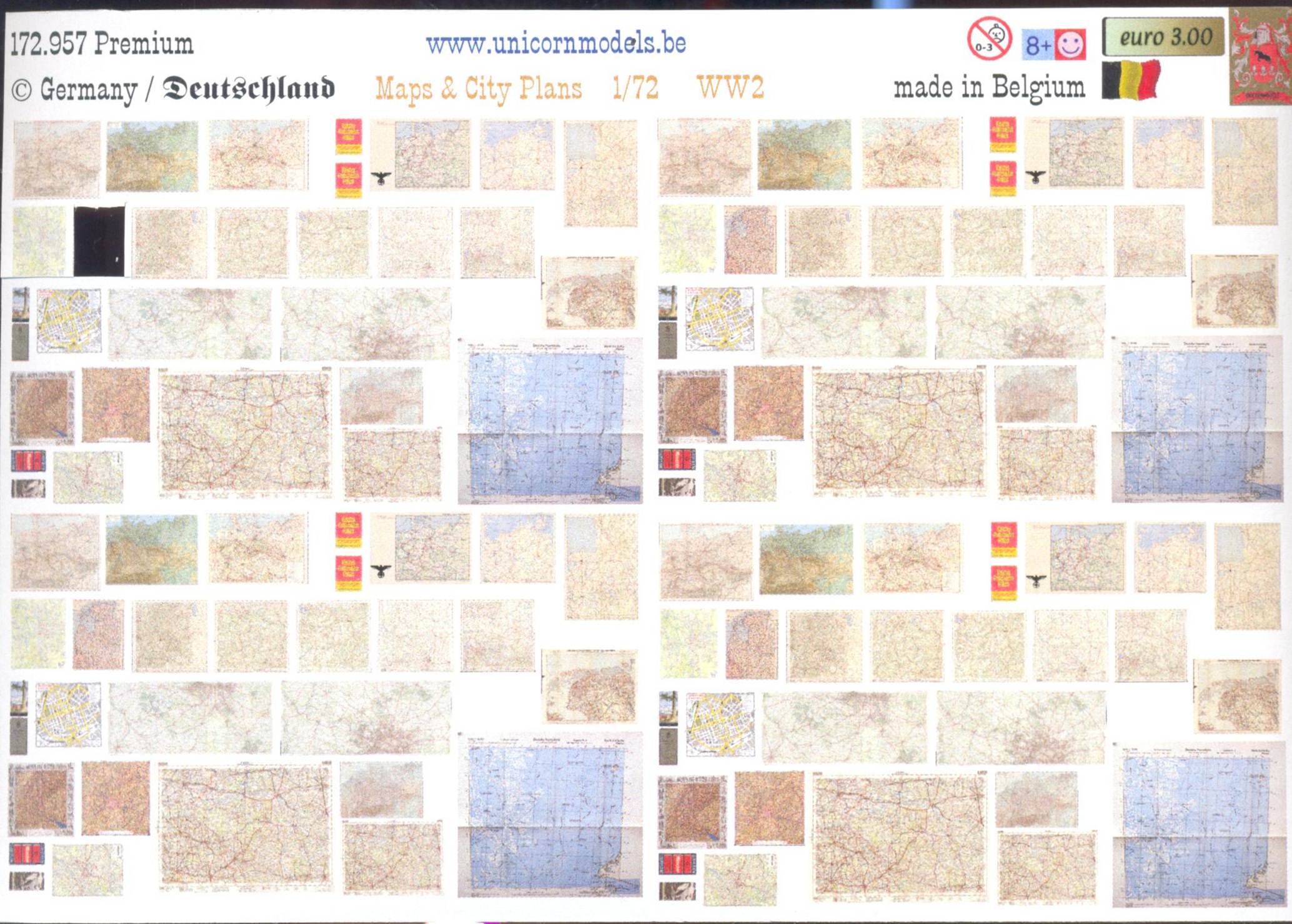 | 172.957 | German maps & city plans | 30 different designs, 4 each. Nicely printed. Note that in the picture one map has already been used (but it is still there three times more). Resolution in scan has deliberately kept low to avoid reproduction. | Picture | |