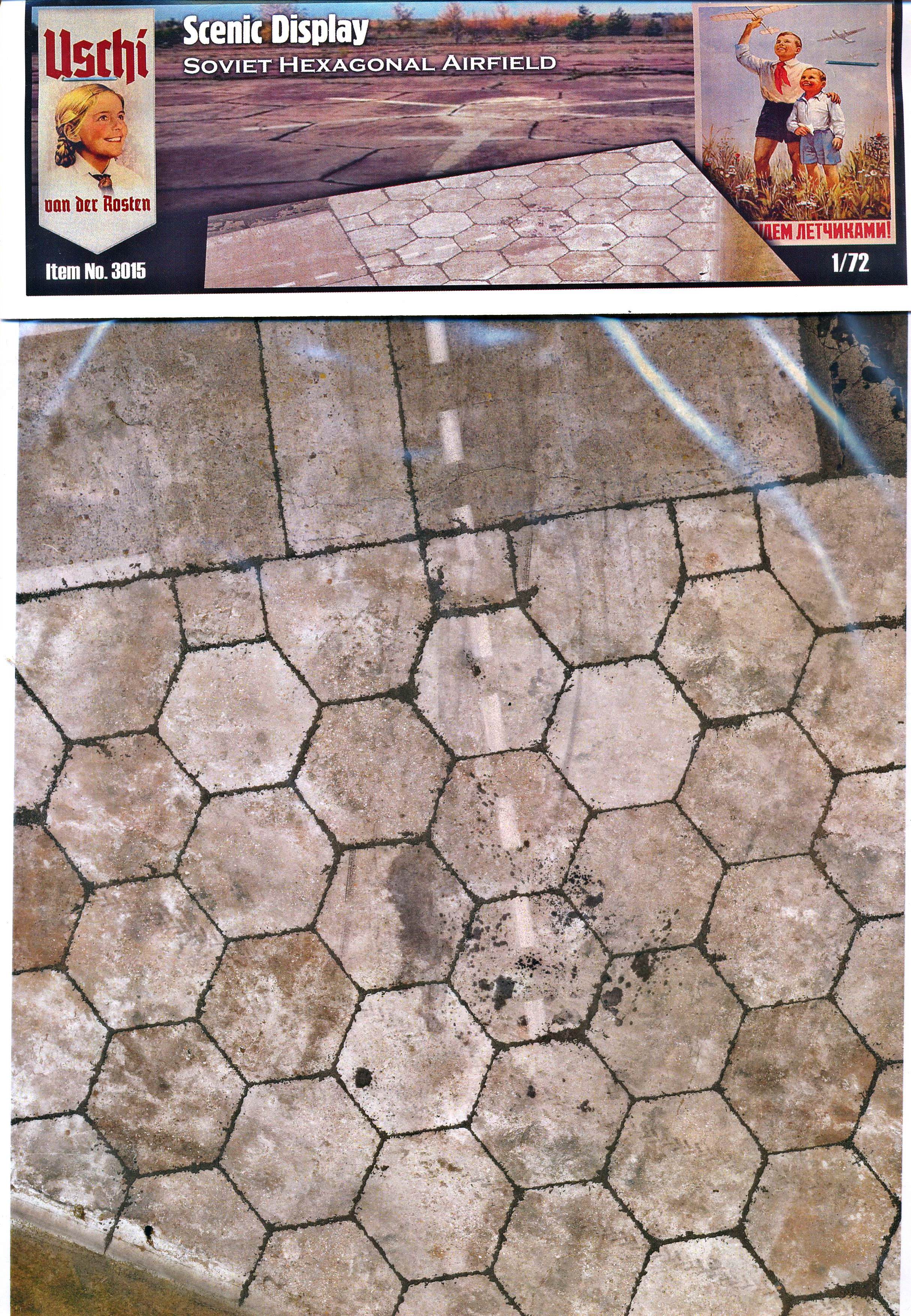 3015 Soviet Hex Airfield Cardboard airfield. Hardstand with hexagonal tiles and small section of taxiway. 28.5 by 20cm. Picture 1