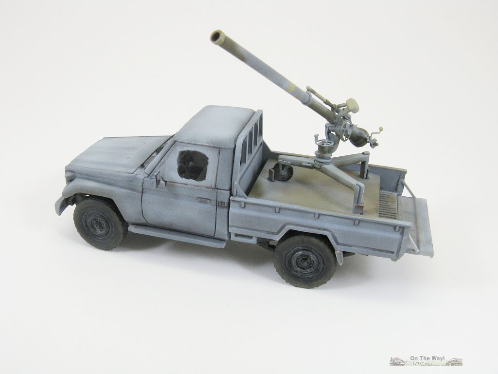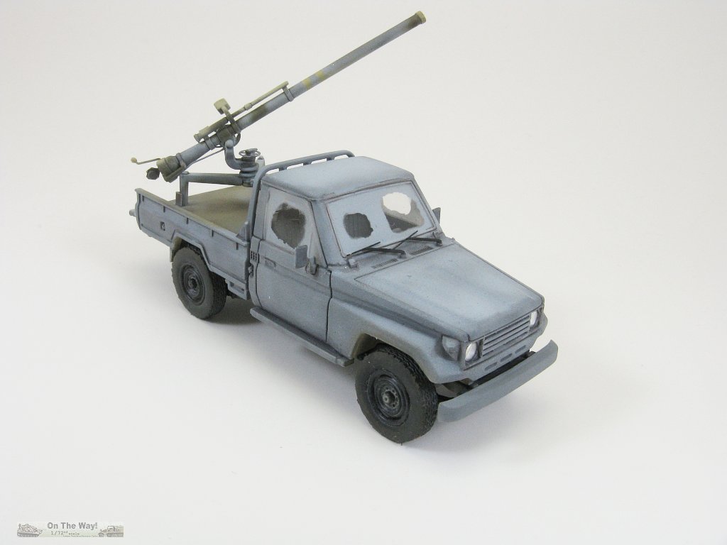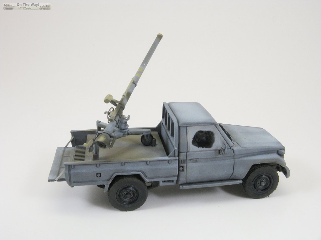 With two kits at my disposal I decided that the first truck would be a build to test overall fit, especially regarding the cabin interior and most crucially the windows. Their fit would be the make or break decision on whether or not to build the second truck. To hedge my bets I also chose a paint scheme that gave me some leeway should the window fit prove to be atrocious. So I chose to toss the ZPU and build it sporting a recoilless rifle in its bed, and camouflage it in an overall grey with painted over windows, similar to the reference photo below.