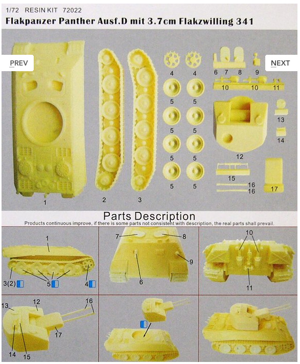 Kit 72022 is for the experimental prototype of the Flak Panther Ausf. D with 2x37mm AA 341. The various later AA versions are based on
