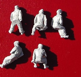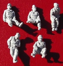 1. Packaging: Plastic bag with zipper 2. Type One piece metal figures, 1/76. 3. Quality: This set has some nice poses and is well sculpted, although the anatomy of the faces is open to conjecture (I like them, some find them dwarfish) Five full figures are included, all reclining or sitting somewhere on a tank. 4 are wearing the black uniform, while the fifth is wearing a two piece denim. The setting possibilities are endless, but I found that they would sit perfectly on a StuG. Apart from that, I'll let the figures speak for themselves. Nice and a bit off the beaten track. Useful for any 1/72 or 1/76 scale diorama depicting a relaxed summer scene. My set had a bit more flash than usual for AB.