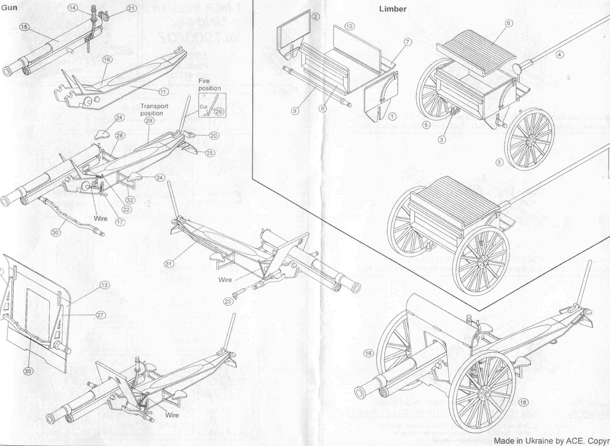 This light field gun can be modeled in service with the Russian Army of World War 1, with the Red Army during the revolution, with the Finnish Army during the Winter War and the Continuation War, with the Polish Army in 1939 (recalibered to 75-mm) (*), and with the Romanian Army during WW2 as the 75-m model 1902/36. The weapon was a design common to it’s time with a recoil system under the barrel and a single trail, comparable to the French 75-mm M1897 and Krupp FK96. The gun and its limber came with wood spoke wheels and was horse drawn. The above high quality box art shows